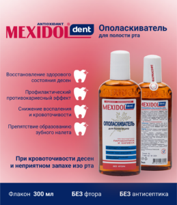 Пример — ополаскиватель для полости рта Mexidol Dent, который снимает воспаление и укрепляет десны, не нарушая баланс микрофлоры.